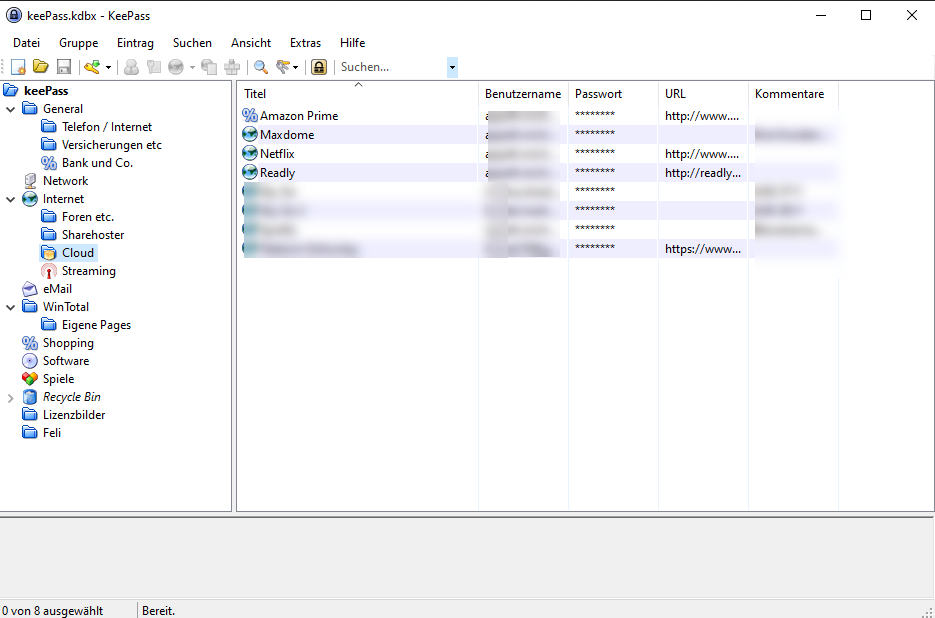 Durch die Untergliederung in Kategorien können Sie Zugangsdaten thematisch zusammenfassen, beispielsweise Streaming-Dienste oder Foren etc. Das erhöht die Übersichtlichkeit bei der Pflege Ihrer Datenbank.