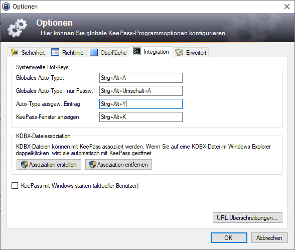 Passwort-Manager wie beispielsweise KeePass können die Zugangsdaten für eine Webseite auch über eine Tastenkombination automatisch eingeben. Dazu müssen Sie nur den Eintrag in KeePass in der Liste selektieren und können über die festzulegende Tastenkombination Auto-Type ausgewählter Eintrag die Daten durch KeePass selbstständig in die Webseite eintragen lassen.