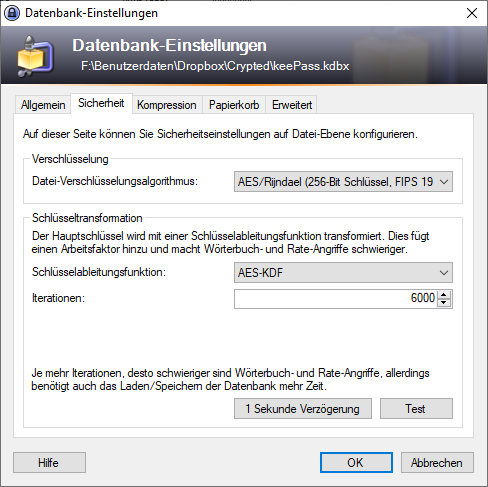 Ergänzend kann der Zugriff noch an eine Schlüsseldatei gebunden werden, welche sich beispielsweise auf einem USB-Stick befindet. Nur in der Kombination von Kennwort und der Schlüsseldatei gibt der Passwort-Manager die Datenbank mit den Zugangsdaten frei.