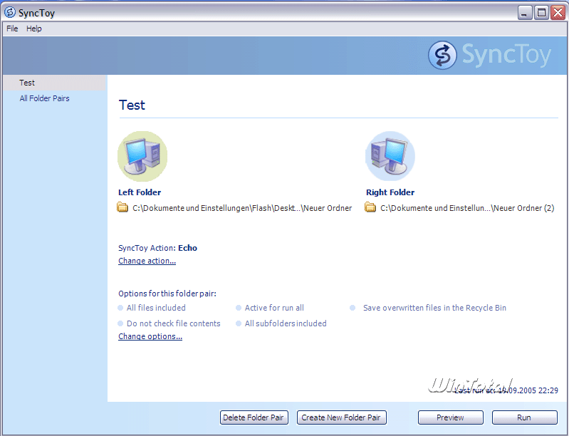 Das bisherige SyncToy wurde überarbeitet und ist damit auch mit Windows Vista und Windows 7 kompatibel. Mit diesem Tool wird das Synchronisieren zweier Ordner zum Kinderspiel. Es können mehrere Profile definiert werden, in denen immer verschiedene Ordnerpaare nebst Unterordnern synchronisiert werden. In den Optionen kann die Synchronisation der Unterordner auch abgestellt werden.