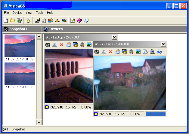 Das kleine Tool Webcam Timershot nimmt mit der Webcam Fotos auf und speichert diese lokal oder auf einem Webserver. Eine ähnliche Funktionalität bietet z.B. Vision GS, welches in der PE-Version für die private Nutzung kostenlos ist, dafür aber nicht alle Features der Vollversion besitzt.