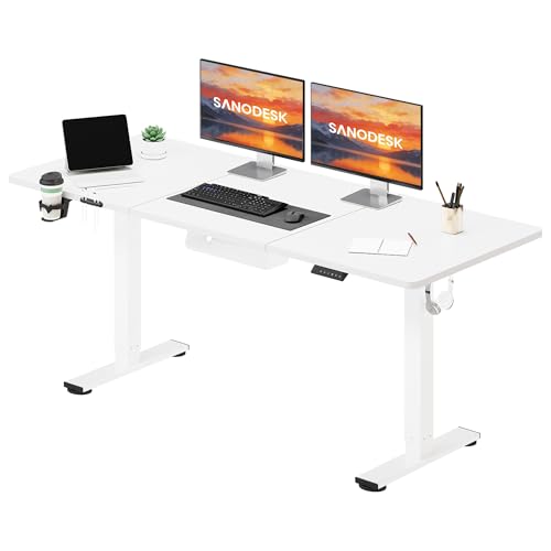 SANODESK Höhenverstellbarer Schreibtisch 160 x 60 cm Schreibtisch Höhenverstellbar Elektrisch Ergonomischer Steh-Sitz Tisch Computertisch für Heimbüro Homeoffice(weiß)