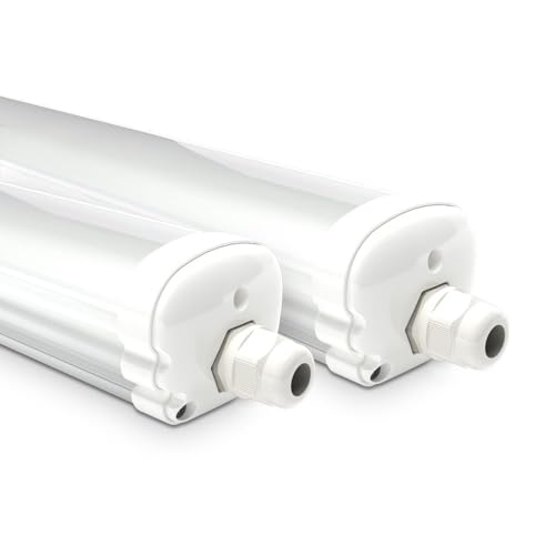 - Plug and Play: Das Anbringen dieser LED Feuchtraumwannenleuchte ist kinderleicht, denn die Lichtquelle ist integriert. Du musst also nicht extra LED-Röhren kaufen. Außerdem erhältst du die Leuchte im Komplettset mit allem, was du zur Montage benötigst und kannst mithilfe der Anschlussverschraubungen bis zu 10 Leuchten miteinander verbinden (Verknüpfbar).