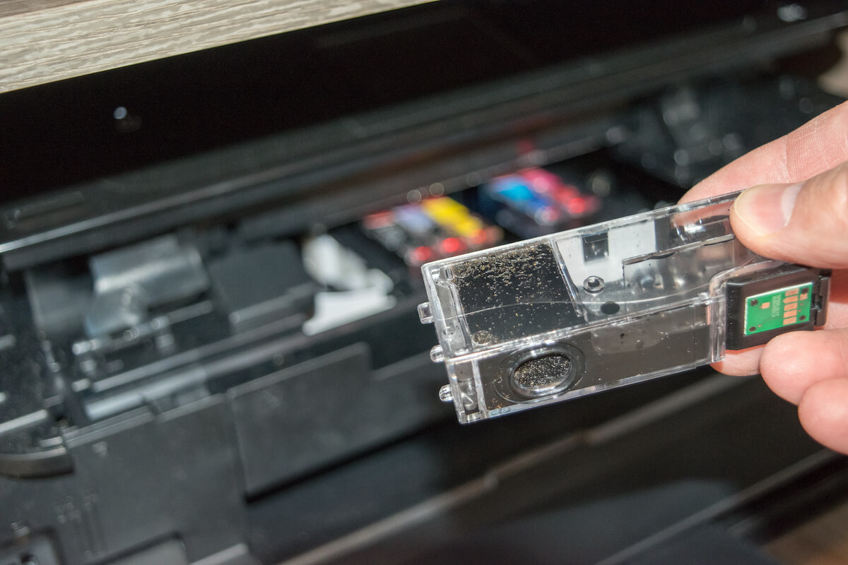 - Patrone herausnehmen: Schalte den Drucker aus und nimm die zu befüllende Patrone vorsichtig heraus.