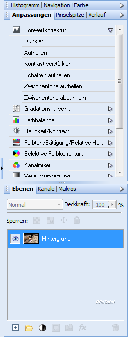 Klickt man bei den Anpassungen z.B. auf Kontrast verstärken, legt PhotoPlus X4 automatisch eine Anpassungsebene zur Tonwertkorrektur an.