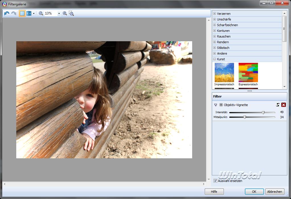 Die Filtervorschau ist dabei erst auf Mehrprozessorsystemen, für welche PhotoPlus X4 optimiert wurde, ohne größere Verzögerung nutzbar. Sonst muss man sich bei aufwändigen Filtern leider etwas mehr gedulden, bis das Ergebnis in der Vorschau präsent ist.