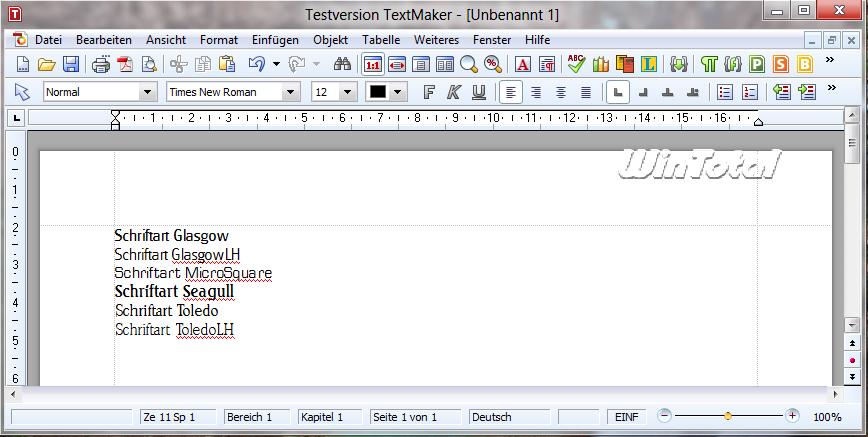 In der Version 2012 gibt es weiterhin keine Ribbons, keine Multifunktionsleiste oder das Menüband, wie es bei Microsoft Office (ab Version 2007) bekannt ist. Darauf wurde bewusst verzichtet. Die Menü- und Symbolleisten und auch die Werkzeuge sind übersichtlich und selbsterklärend, wie schon in den Vorversionen. Sie können ein Dokument im TextMaker-eigenen Format (*.tmd, *.tmv) oder im Microsoft-Word-Format (*.doc, *.docx, *.dot, *.dotx, *.dotm, *.docm) speichern. Unterstützt werden auch Formate von OpenOffice, StarOffice, LibreOffice (*.odt, *.ott), Word 6.0 (Wordpad), Rich Text (*.rtf), Pocket Word, Windows CE (*.psw) und Word-Handheld (*.pwd, *.pwt).