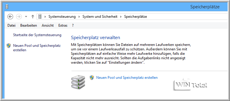 Den Speicherplatz kann man sich wie die Bibliotheken im Explorer vorstellen. Werden 2 Bilder-Ordner in einer Bibliothek abgelegt, werden alle Bilder in der Bibliothek gleichzeitig angezeigt, egal auf welcher Partition diese Ordner liegen. Das gleiche gilt für den Speicherpool, eben nur mit Festplatten.