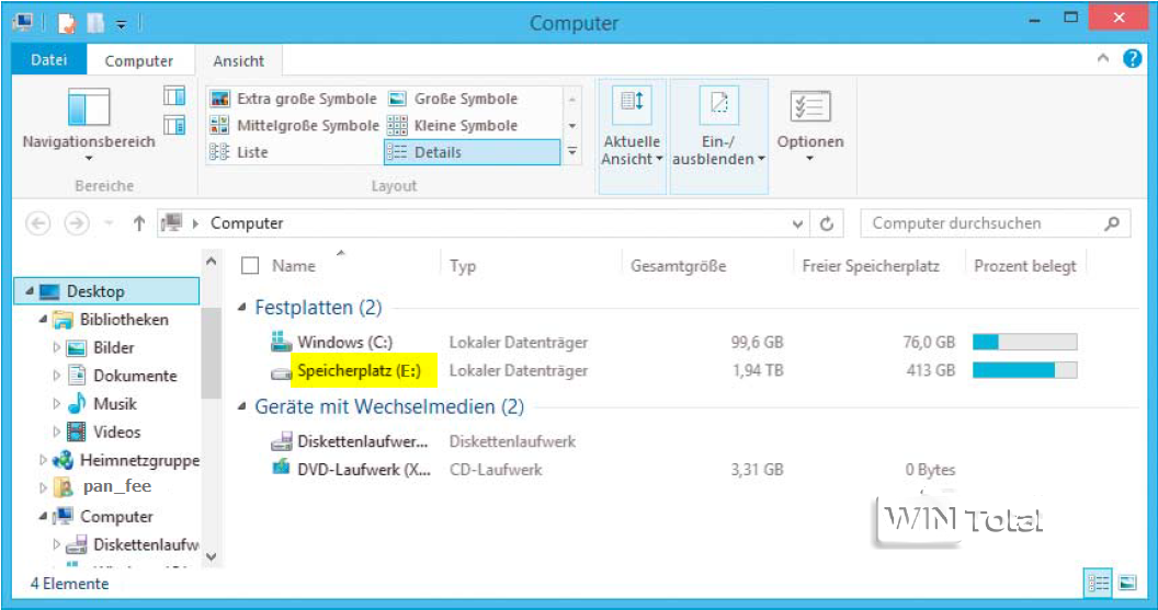 Der neue Speicherplatz verhält sich unter Windows wie eine herkömmliche Festplatte, im Explorer lässt er sich davon nicht unterscheiden.