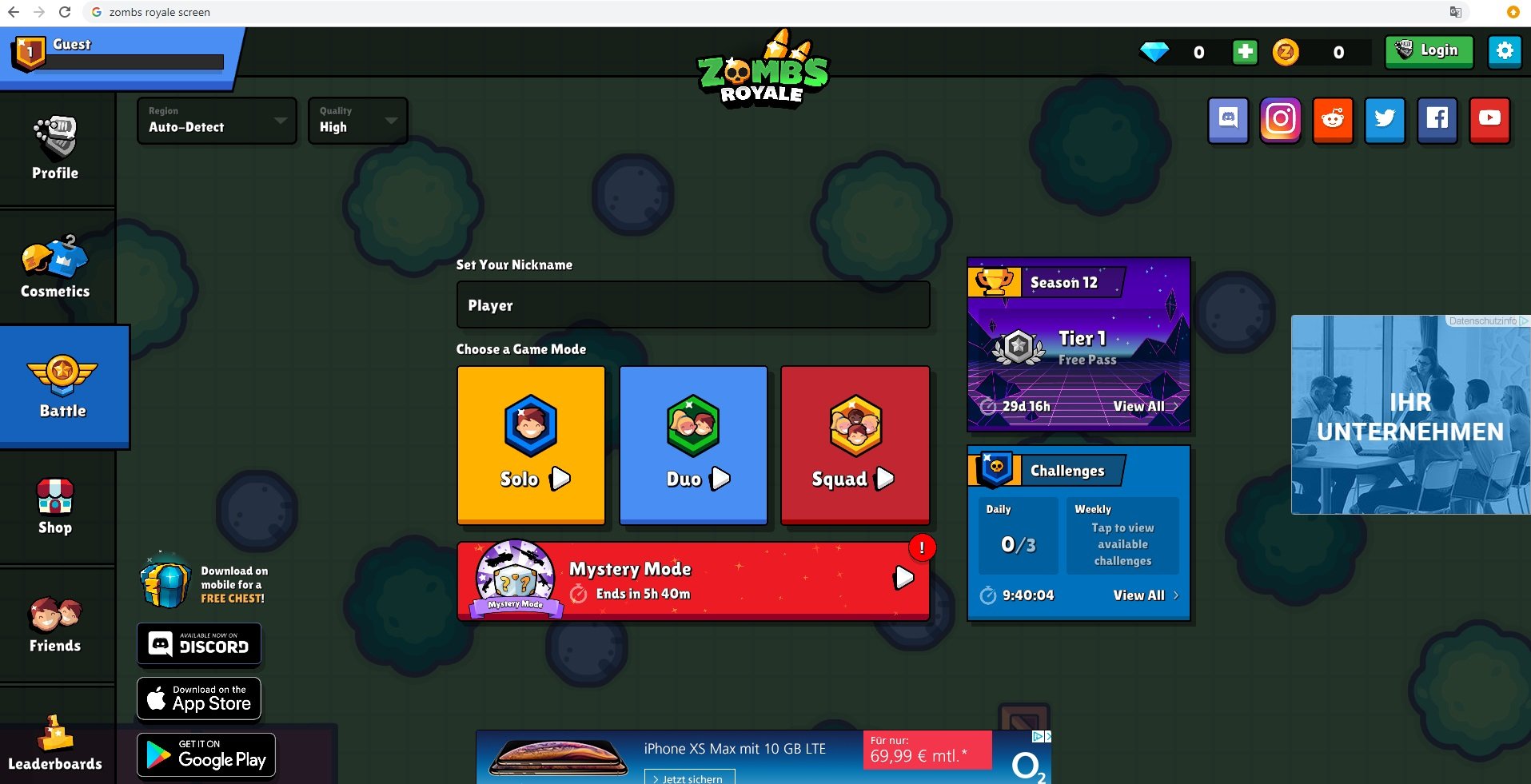 Ja. Das 2D-Battle-Royal-Game „Zombs Royale“ aus diesem Beitrag wird beispielsweise über einen Browser gespielt und benötigt dadurch überhaupt keinen HDD-Speicherplatz.