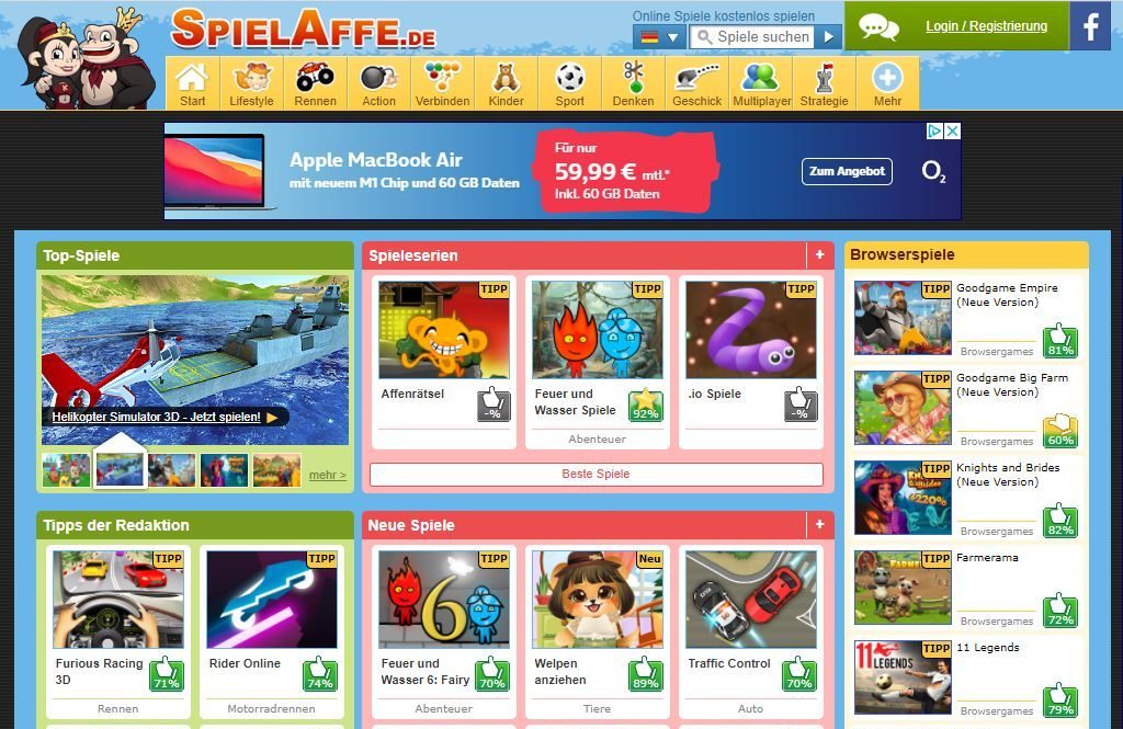 Für Kinder gibt es verschiedene Spieleseiten, die sich ausschließlich auf altersgerechte Games und Inhalte spezialisiert haben. Dazu zählt beispielsweise die Seite Spielaffe.de, die wir Ihnen weiter unten in diesem Beitrag noch im Detail vorstellen.
