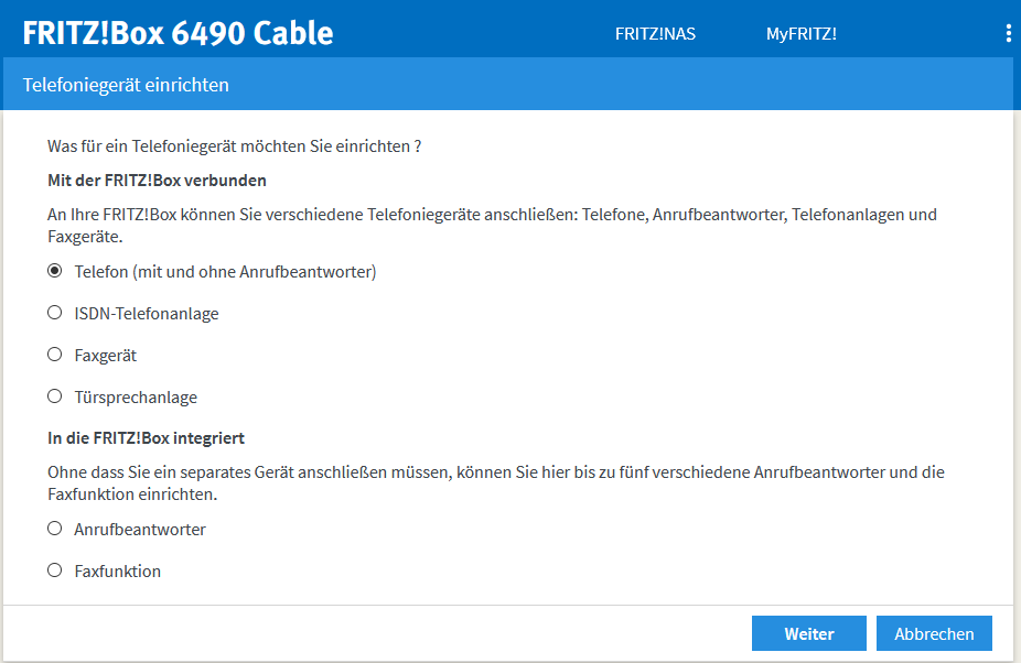 Klicken Sie nun auf „Neues Gerät einrichten“ und wählen Sie hier „Telefon“.