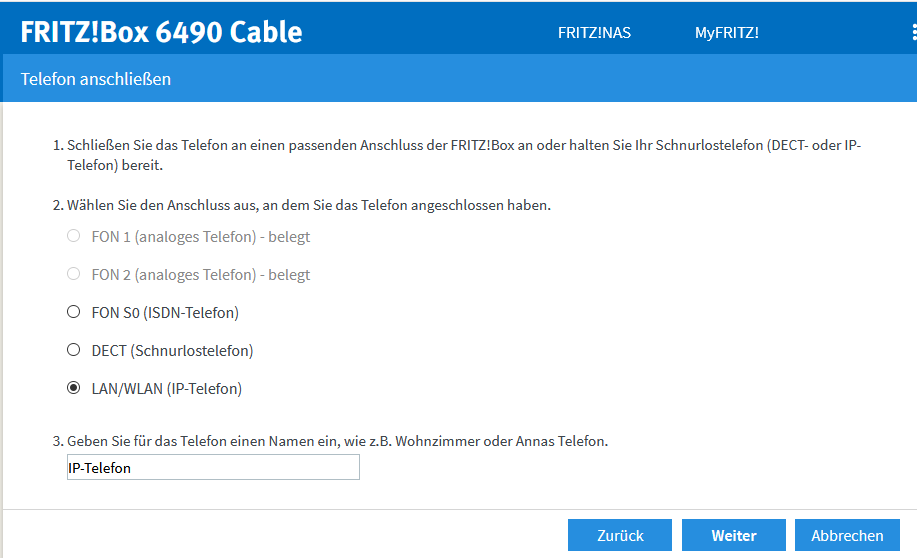 Im folgenden Dialog wird das Telefongerät als IP-Telefon konfiguriert.