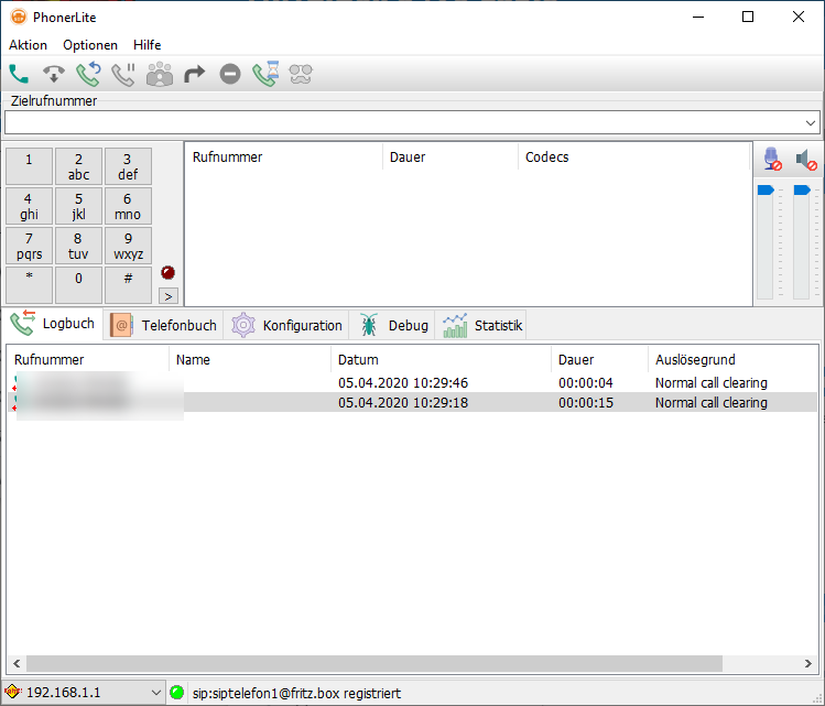 habe mal ein internes Telefonat (über **PC-Nummer) getetestet. Hier höre ich meinen Gegenüber am PC.