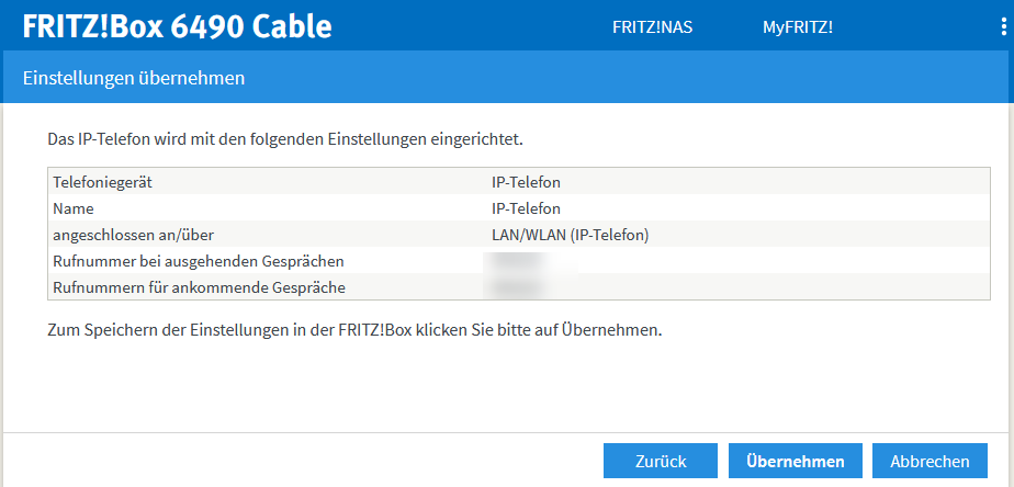 Im letzten Schritt fasst die Fritz!Box die Einstellungen nochmals zusammen.