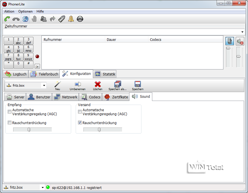 Auch in PhonerLite können Sie das Mikro noch anpassen.