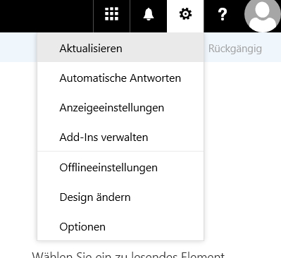 Auch über die Outlook Web App (https://owa.Ihredomain.de) oder die Outlook-App für iPhone und Android-Handy, können Sie automatische Antworten definieren. Sie finden die dafür notwendige Einstellung hinter dem Zahnradsymbol.