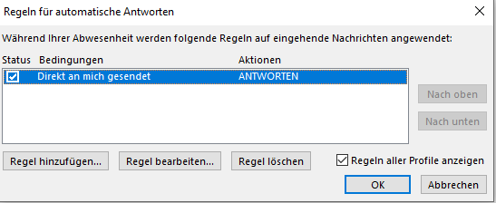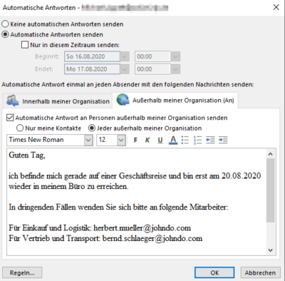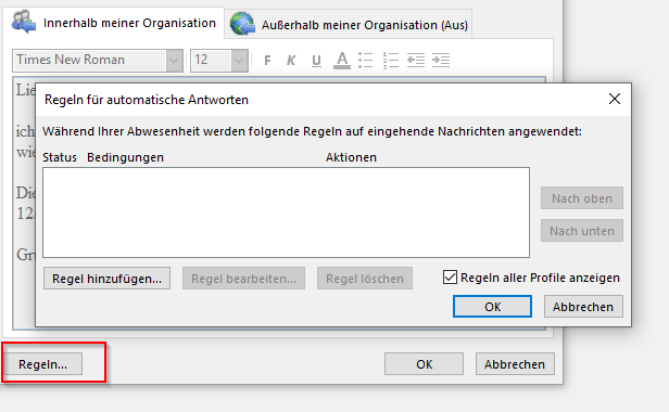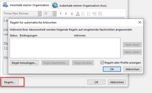 4. Individuelle Abwesenheitsnotizen über Regeln in Outlook