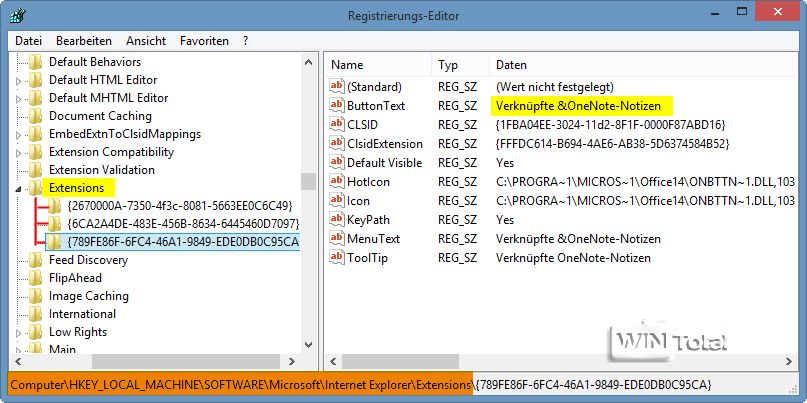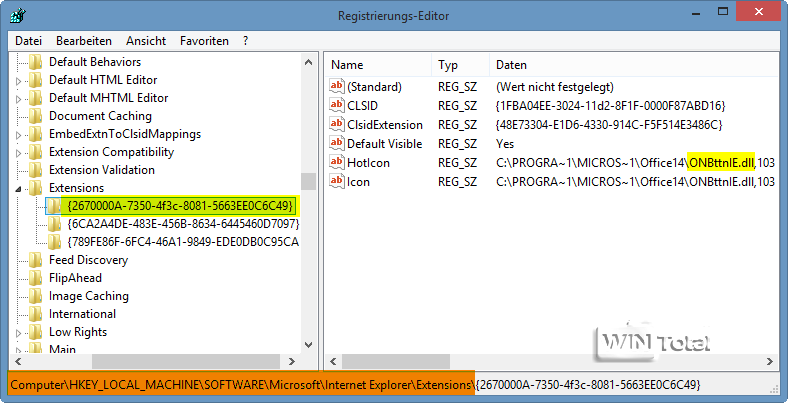 Auch diesen Eintrag finden Sie in der Registry unter „Extensions“ mit der Klassenkennung.