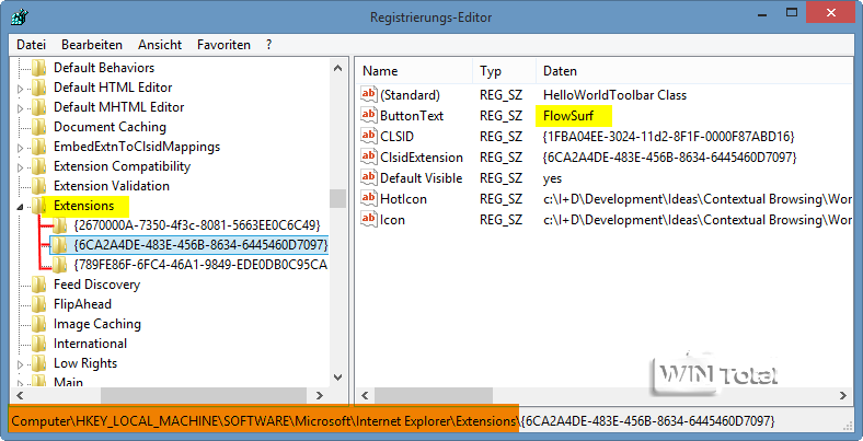 HKEY_LOCAL_MACHINE\Software\Microsoft\Internet Explorer\Extensions