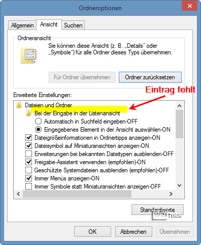 Wer den Eintrag lieber wieder in den »Ordneroptionen – Ansicht« haben möchte, braucht nur diese Reg.-Datei downloaden, entpacken und die .reg ausführen.
