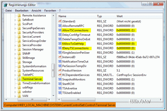 fDenyTSConnections mit dem Wert 0 erstellen. Noch einen letzten DWORD-Wert namens
