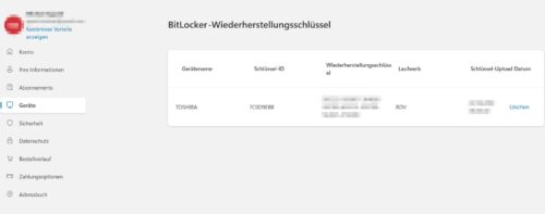 Bitlocker-Wiederherstellungsschlüssel online