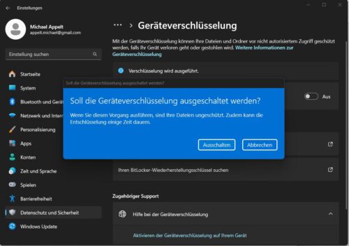Sie können BitLocker allerdings jederzeit wieder deaktivieren. Beachten Sie dabei, dass die Entschlüsselung im Hintergrund einige Zeit in Anspruch nimmt.