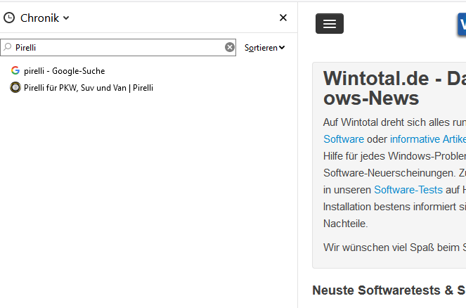 Der Verlauf wird in Firefox über eine Seitenleiste angezeigt.