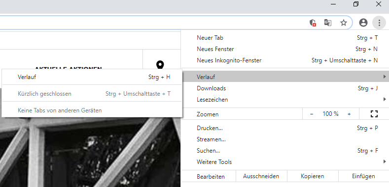 Über die Tastenkombination STRG+H können Sie den Browserverlauf in Chrome anzeigen.