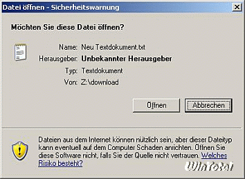 Wir nun eine Datei über Rechnergrenzen hinweg aufgerufen, so kann es zu folgenden Meldungen kommen: