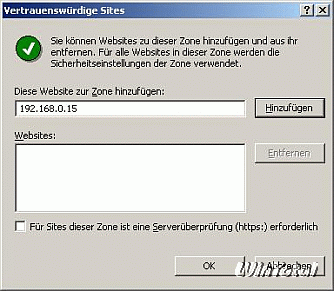 Durch Klicken auf Hinzufügen wird die IP-Adresse der Liste „Websites“ ergänzt.