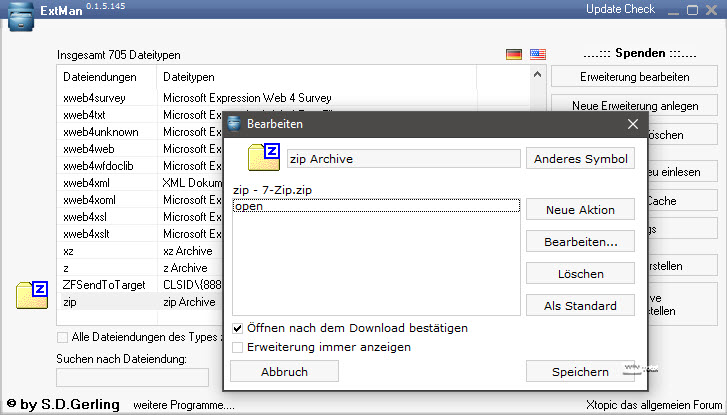 Abhilfe schafft das kleine Tool Extman, welches portabel auch unter Windows 10 läuft und die alten Möglichkeiten wieder bietet.