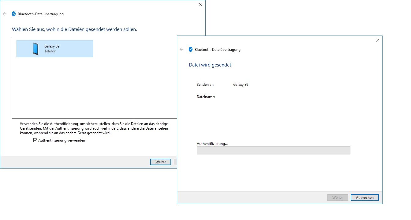 - Wählen Sie nun den Punkt „Datei mit Bluetooth versenden“ und anschließend das Gerät aus, das die Datei empfangen soll.