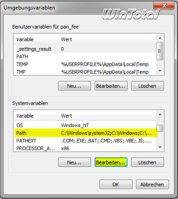 Das Problem wird meistens von Tunings-Tools, Security Suites oder Virenscannern verursacht. Einige Programme wie WinAVR oder F-Secure ändern den Path unter Systemvariablen in den „Umgebungsvariablen“.