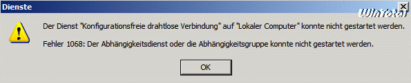 Der Dienst „Konfigurationsfreie drahtlose Verbindung“ auf „Lokaler Computer“ konnte nicht gestartet werden.