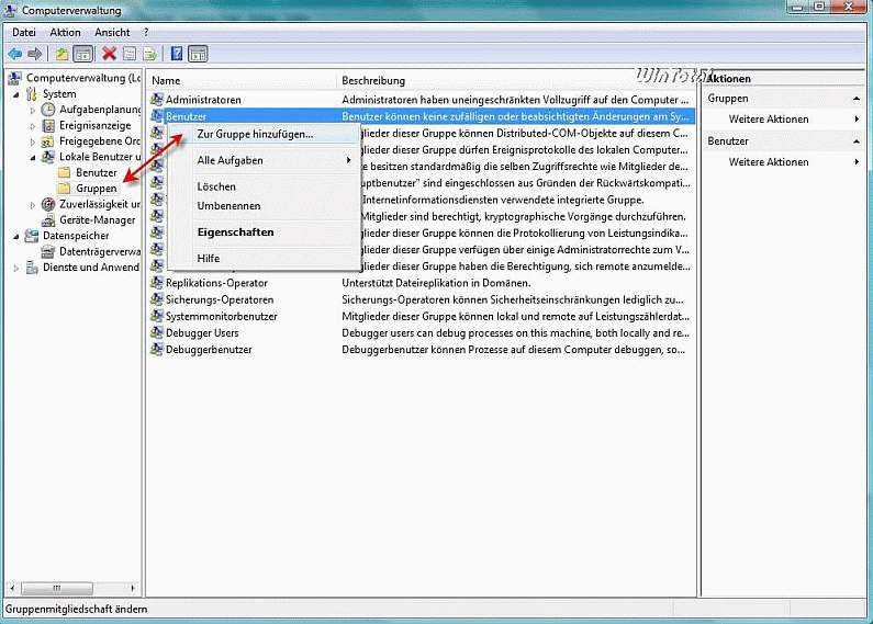 In der Computerverwaltung (compmgmt.msc) unter Lokale Computerverwaltung – System – Lokale Benutzer und Gruppen – den Benutzer, der in der Fehlermeldung vorgekommen ist, mit Rechtsklick „zur Gruppe hinzufügen“.