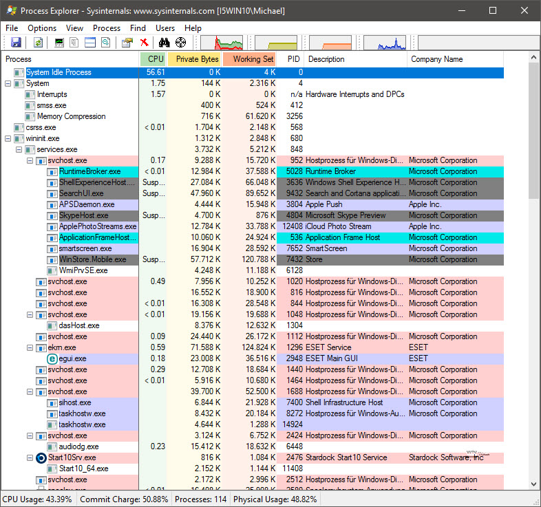 Alternativ kann man auch das Tool Process-Explorer verwenden, welches in einer Baumansicht sehr übersichtlich darstellt, welche Prozesse mit svchost.exe verbunden sind. Hier sollte man bei Problemen dann gezielt ansetzen.
