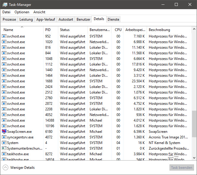 Erst hier wird ersichtlich, welche Dienste die Datei SVCHOST.EXE nutzen.