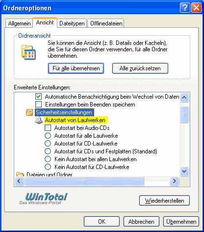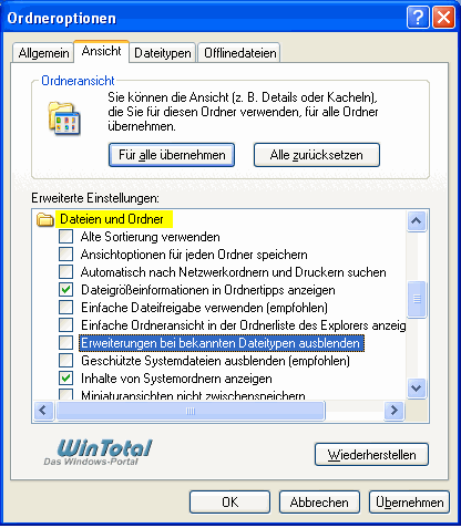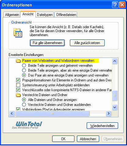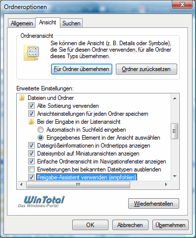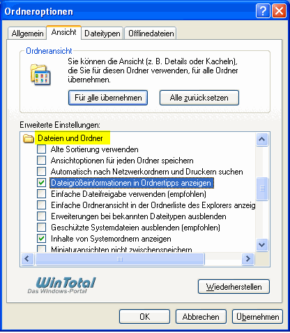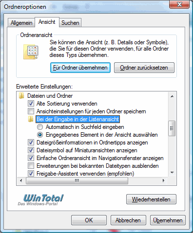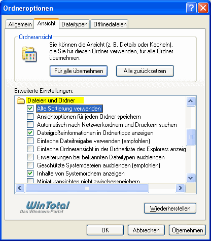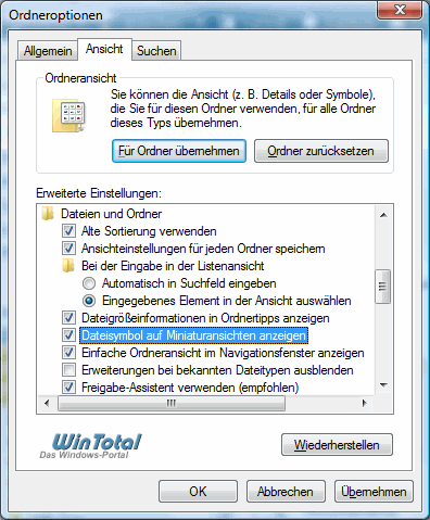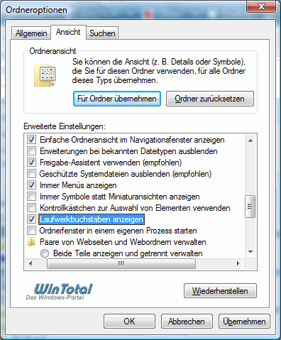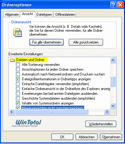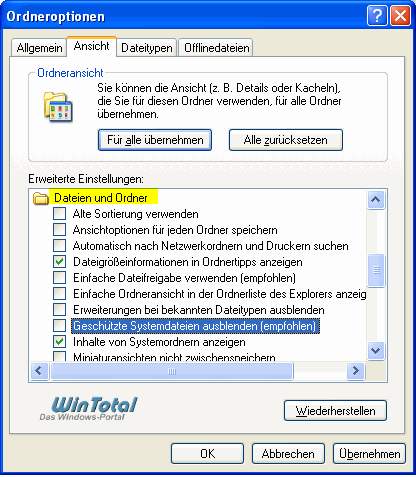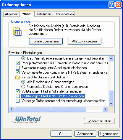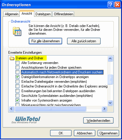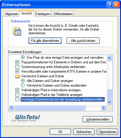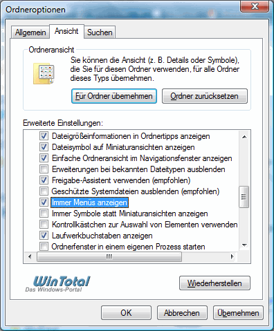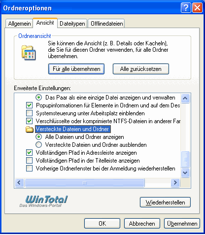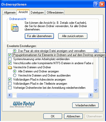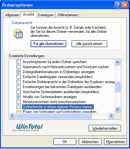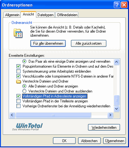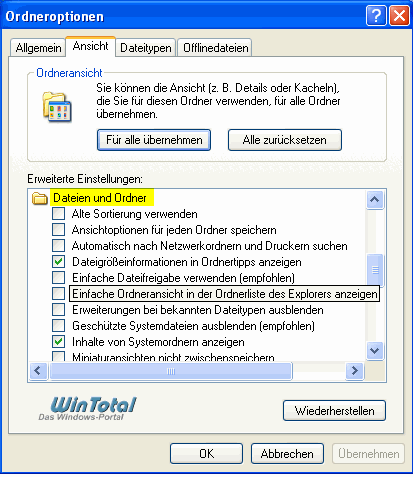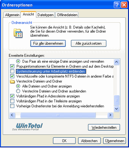 - //www.wintotal.de/tipparchiv/?id=1607 (In den Ordneroptionen unter ANSICHT fehlen Einträge)