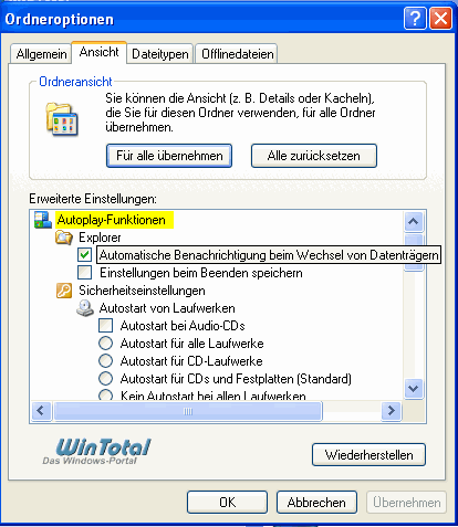 - 1. Automatische Benachrichtigung beim Wechsel von Datenträgern (XP, Vista)