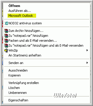 Mit einem Rechtsklick auf eine Datei, die versendet werden soll, erscheint der Eintrag, der unter outlook in der Registry vergeben wurde (Beispiel Microsoft Outlook).