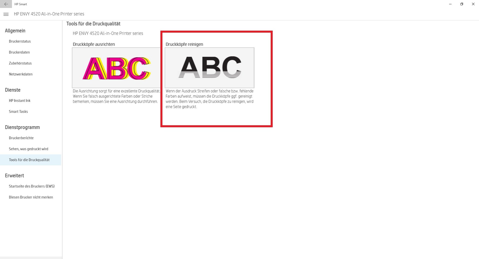 Versuchen Sie daher im ersten Schritt, den Druckkopf mit Hilfe der integrierten Druckkopfreinigung wieder in die Gänge zu bekommen. Die entsprechende Einstellung finden Sie im Verwaltungsprogramm Ihres Druckers. Für ein zufriedenstellendes Ergebnis reicht ein Durchgang aber meist nicht aus, wiederholen Sie den Vorgang daher möglichst zwei bis drei Mal.