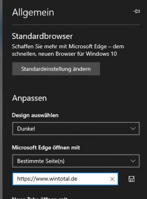 Sie können aber auch eine eigene Startseite festlegen, welche Edge dann beim Start aufruft.
