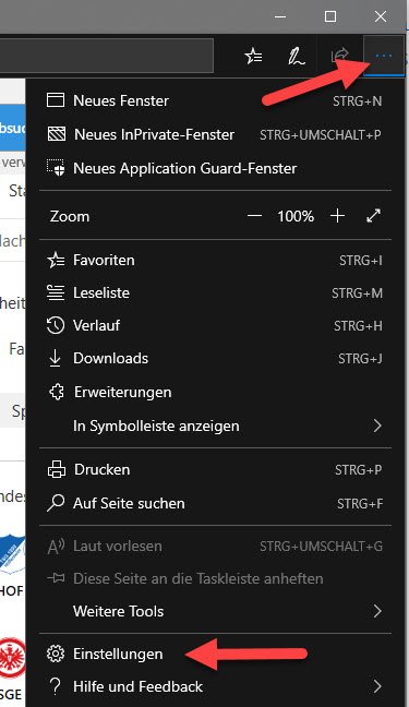 - Rufen Sie dazu das Menü von Edge über die drei Punkte oben rechts