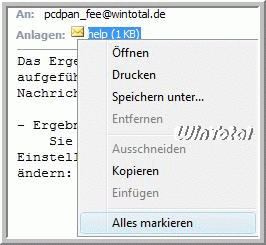 Beispiel: Wenn eine E-Mail mit mehreren Dateianhängen eintrifft, kann man im Vorschaufenster jeden einzelnen Anhang mit der rechten Maustaste anklicken und über den Kontextmenübefehl „Speichern unter“ auf die Festplatte ablegen. Wenn Sie aber alle Dateianhänge auf einmal speichern möchten und dazu alle Anhänge markieren, fehlt der Befehl „Speichern unter“ im Kontextmenü.