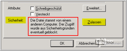 „Die Datei stammt von einem anderen Computer. Der Zugriff wurde aus Sicherheitsgründen eventuell blockiert.“