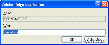 bei dem Eintrag SCRNSAVE.EXE unter „Wert“ den Pfad zum gewünschten Bildschirmschoner eingeben.