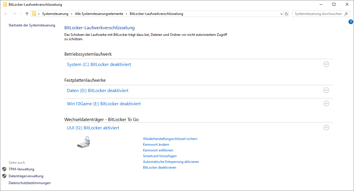 BitLocker hat den Nachteil, dass es nur für Windows und hier auch nur problemlos für Windows 8.1 oder Windows 10 Professional verfügbar ist.