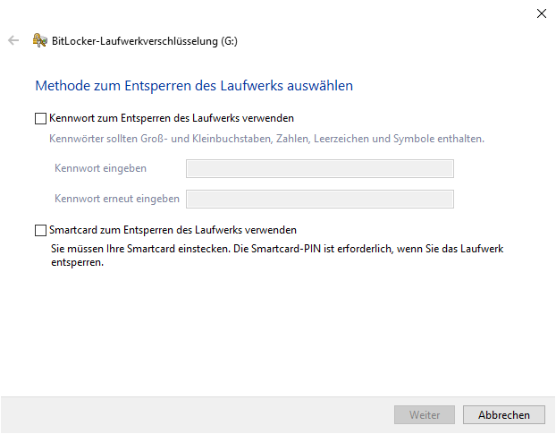 Sobald Sie BitLocker aktivieren möchten, muss ein komplexes Kennwort eingegeben werden, mit welchem sich der Datenträger später entsperren lässt.